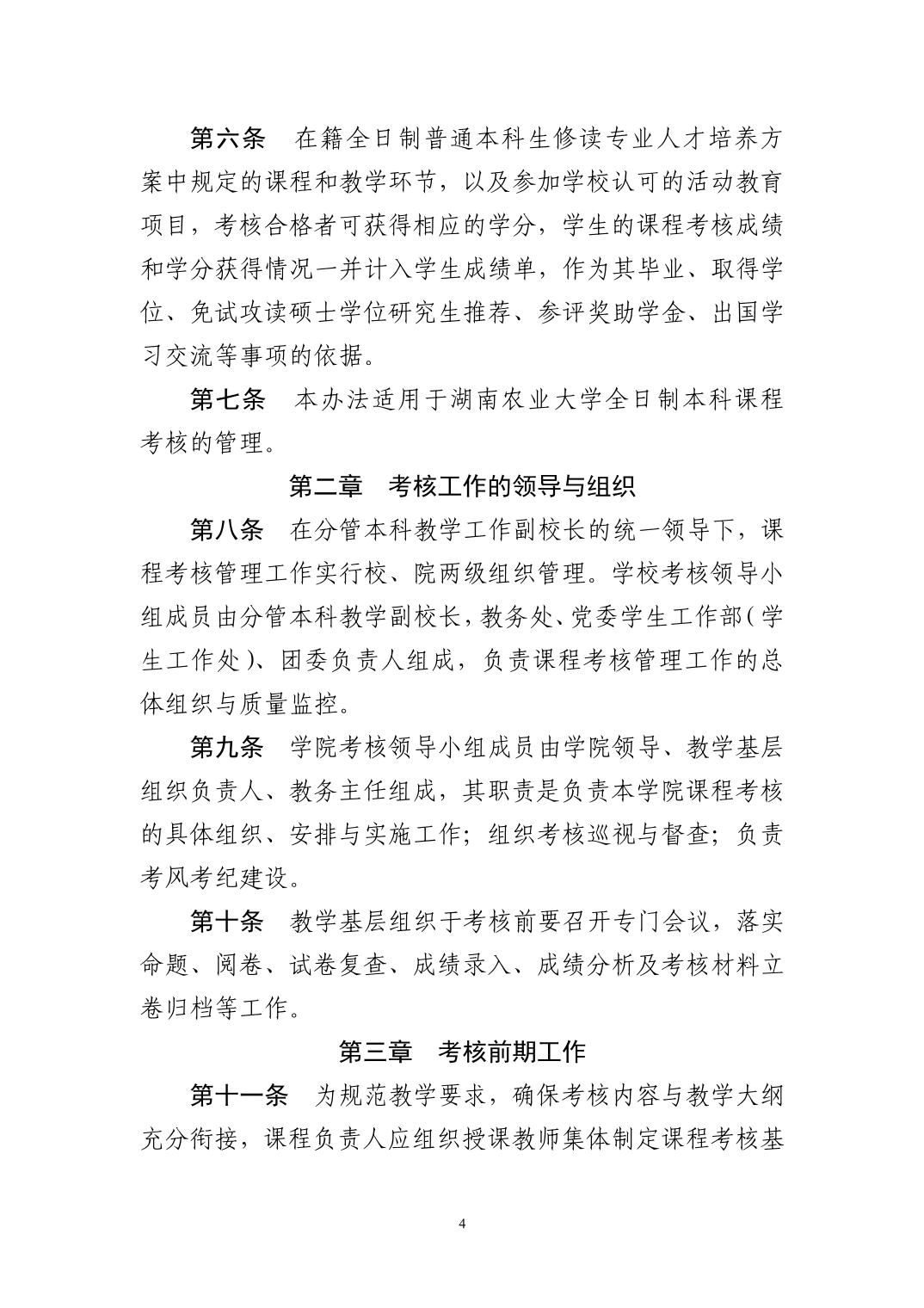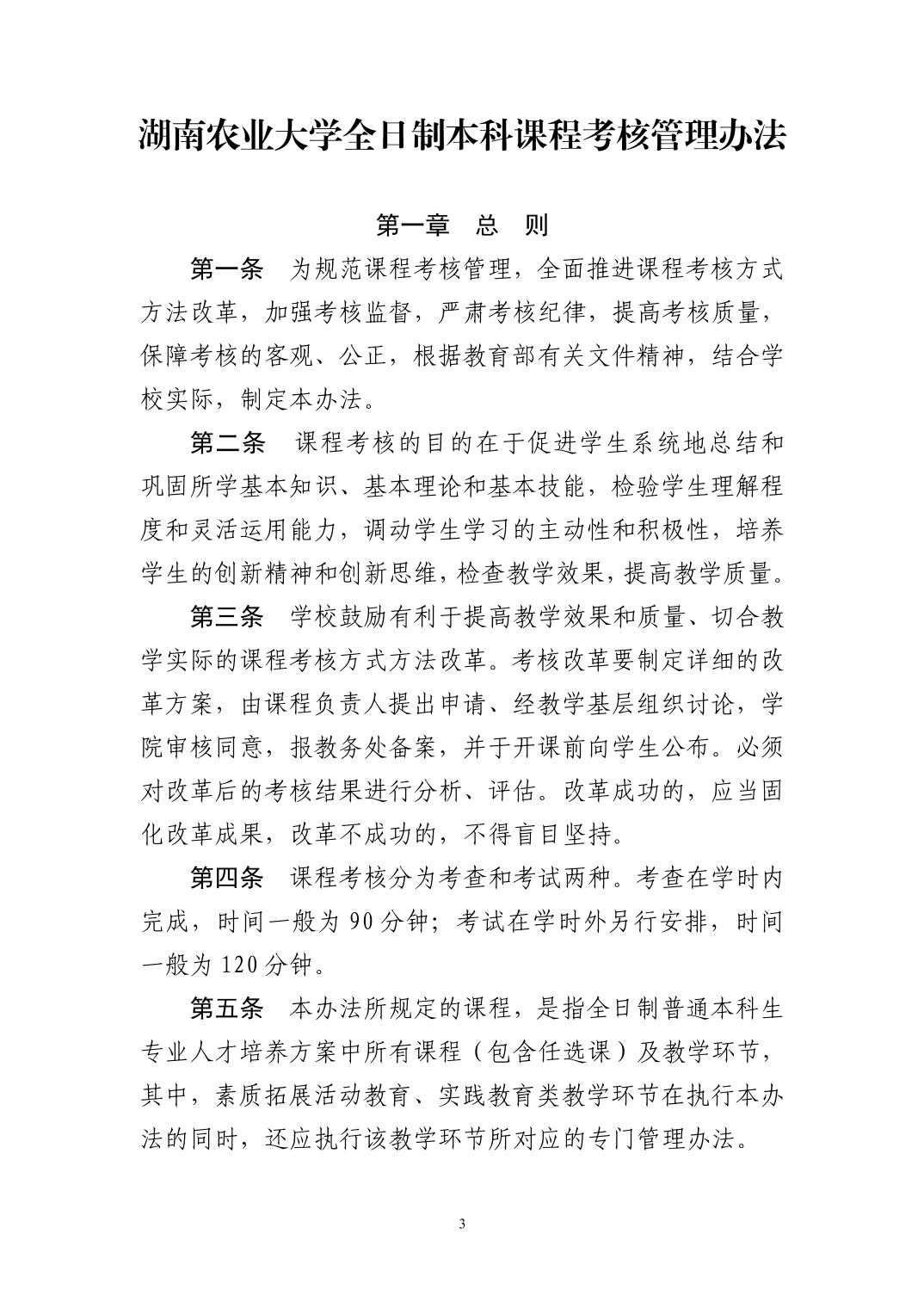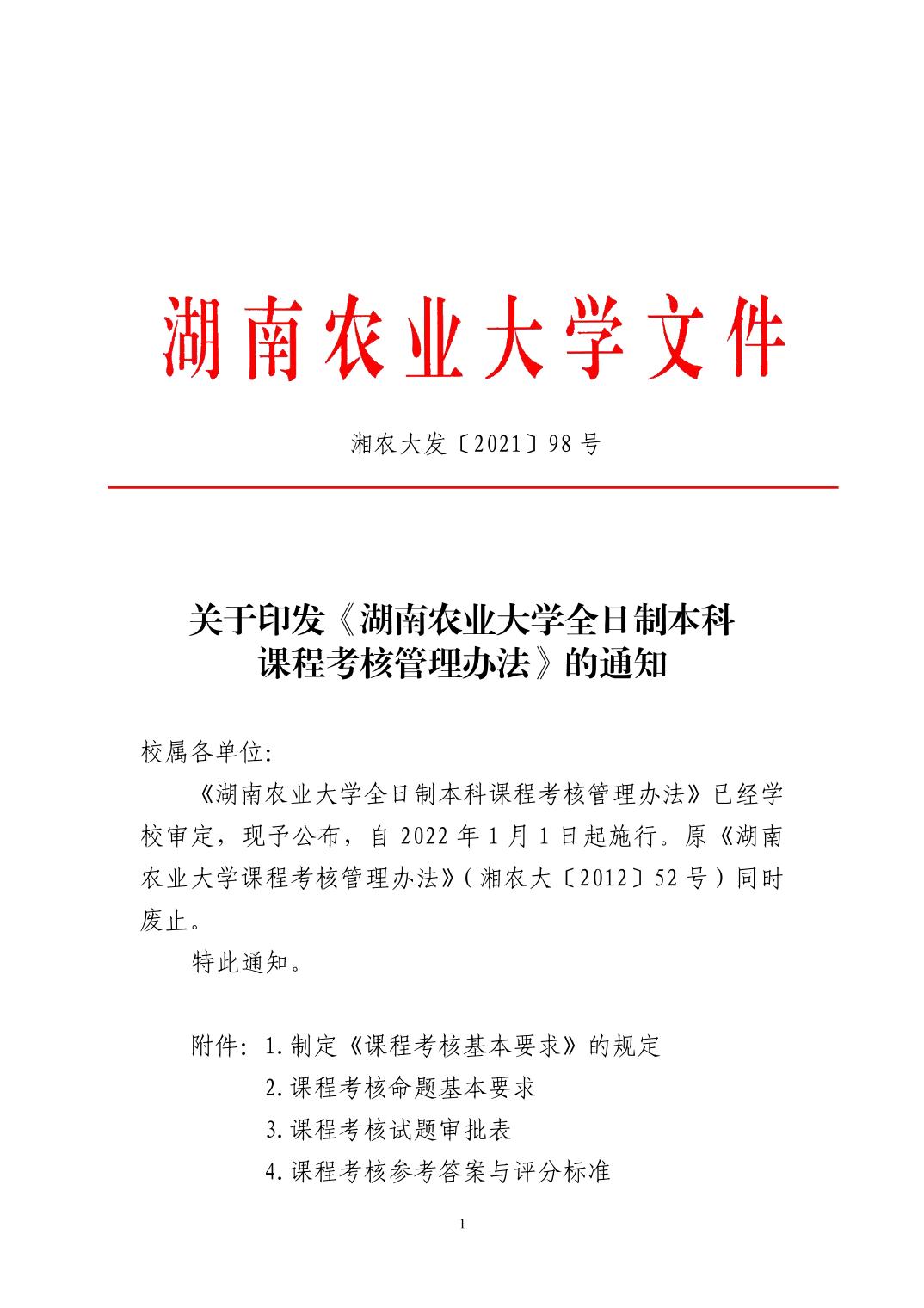 关于印发《湖南农业大学全日制本科课程考核管理办法》的通知