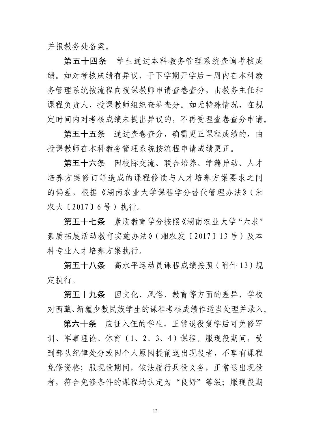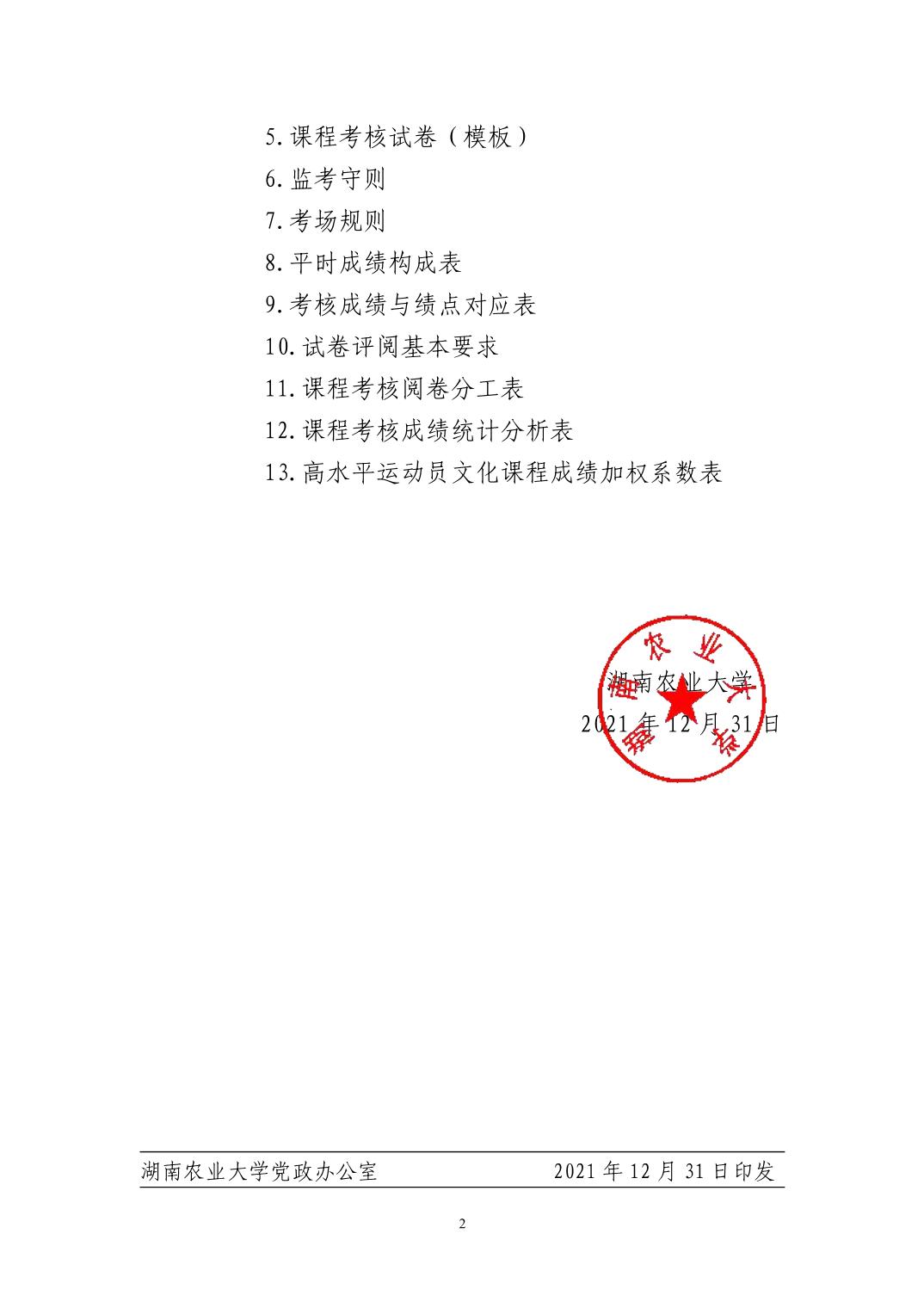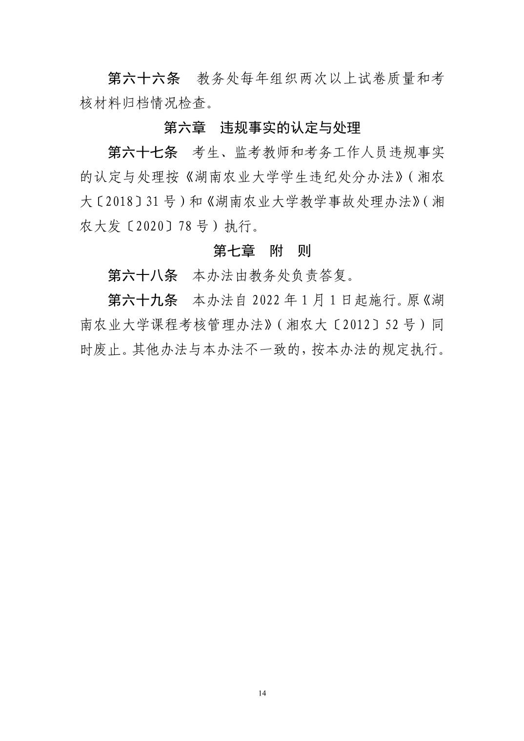 关于印发《湖南农业大学全日制本科课程考核管理办法》的通知