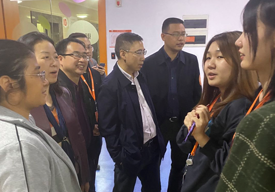 11月10日晚,商学院党委书记李阿利、院长杨亦民赴我院电子商务专业校外实习基地御家汇股份有限公司专程看望在基地实习的2017级电商专业学生,并在公司总政管理部总监旷毅和公共事业部总监王英平的陪同下参观了“双十一”前夕的御家汇大楼。一同前往的还有副院长莫鸣、副书记丁彦,电商系主任盛晏、旷彦昌副教授、实验室张丽老师。