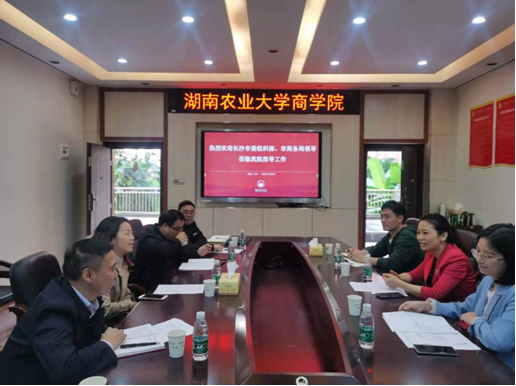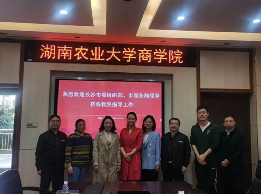 11月9日上午,长沙市商务局电商处处长袁芳、主任科员喻勇,长沙市市委组织部人才办周笑一行3人莅临我校实地考察申报长沙市跨境电商人才孵化基地建设的培训场所、设施设备等相关条件。陪同考察的有商学院党委书记李阿利、院长杨亦民、副院长莫鸣,以及电子商务专业相关负责人。