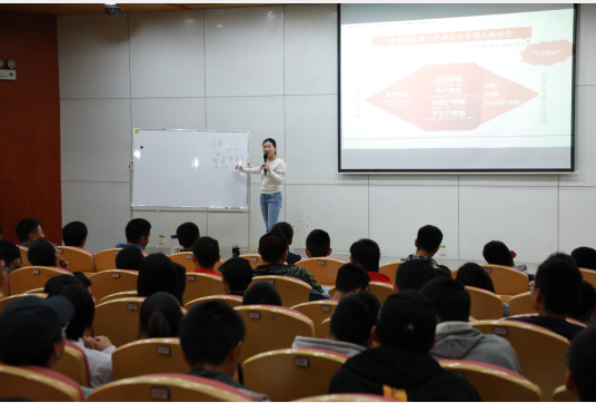 课堂在反映全面内战爆发时国共双方实力的两组数据对比中开始,继而引出中国共产党克敌制胜的三大法宝是抓住了中国“革命的关键环子”——农民的土地问题。然后,黄跃红老师站在大历史角度,从“抓住中国革命中心问题的重大意义”和“中国共产党对农民土地问题的政策策略探求与实践效应”两个方面,旁征博引,层层递进,同时灵活采用集体朗读、选人唱歌、学分奖励等有趣的互动形式,使同学们更深刻地认识到土地问题的重要性,也认识到了解决土地问题的极端重要性,也明白了中国共产党之所以能凝聚中国最广大的民心和民力的秘诀是三大法宝,对当代的启示是毫不动摇坚持辩证唯物主义世界观方法论、坚持以人民为中心的发展观、永葆初心本色和坚持马克思主义、毛泽东思想的指导思想地位。