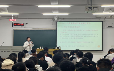 郭老师本次主讲《无机及分析化学A》中的“元素基本性质的周期性变化”。作为一名新进教师,郭老师授课大方,表达流利,教态自然,板书公正,能较熟练地运用现有教学设备,课堂展开有序、顺畅、自然。