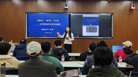 本网讯(教务处 许春英)12月1日下午,学校特邀首届全国高校教师教学创新大赛二等奖获得者彭小珈老师领衔开展疫情未返校学生的教与学专题研讨活动。本次活动由教务处李方一副处长主持,采取线上、线下相结合的方式,40余名教师和5名学生代表来到现场,数百名师生通过学习通直播、回放方式参加学习与交流。