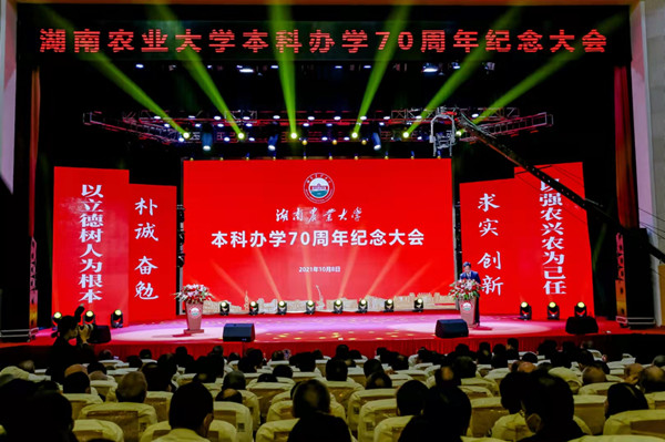 本网讯 (宣传部 庹炼 郭慧)七秩芳华,弦歌不辍。10月8日上午,湖南农业大学本科办学70周年纪念大会在大礼堂隆重举行。