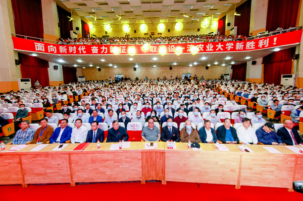 中国工程院院士、校长邹学校作题为《守修业初心 育时代英才 谱写建设一流农业大学新篇章》的致辞。他回顾了70年来的本科办学历程,他表示,湖南农大的发展史,是一部艰苦创业、自强不息、成就辉煌的奋斗史。在学校的发展和建设中,坚持党的全面领导是根本保证;“根植湖南,服务三农”是根本价值;拔尖人才是核心资源;风清气正的政治生态是根本保障。面对中华民族伟大复兴的战略全局和世界百年未有之大变局,建设好一流本科、一流学科和一流大学,是全体湖南农大人对时代命题的最强回应。我们这一代农大人,要始终高举习近平新时代中国特色社会主义思想的伟大旗帜,心怀“国之大者”,以立德树人为根本,以强农兴农为己任,用满腔热血和干事创业的激情,扎根三湘大地,培养更多“一懂两爱”人才,向着一流农业大学建设目标奋勇前进。