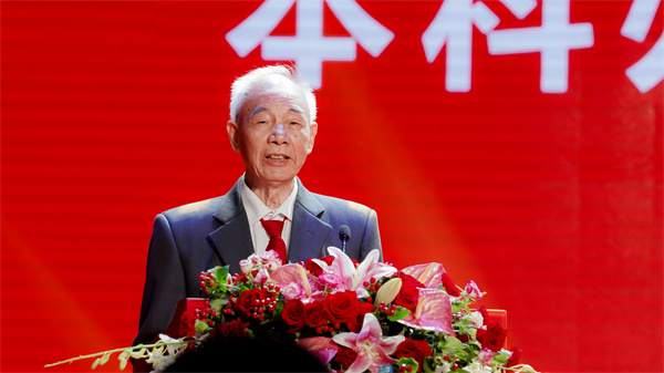 食品科学技术学院退休老教授杨泌泉代表老一辈教师发言。他回忆了自己在母校求学、任教的生活点滴。老一辈教师欣喜看到,在党的坚强领导下,全校凝心聚力,攻坚克难,学校发展日新月异。