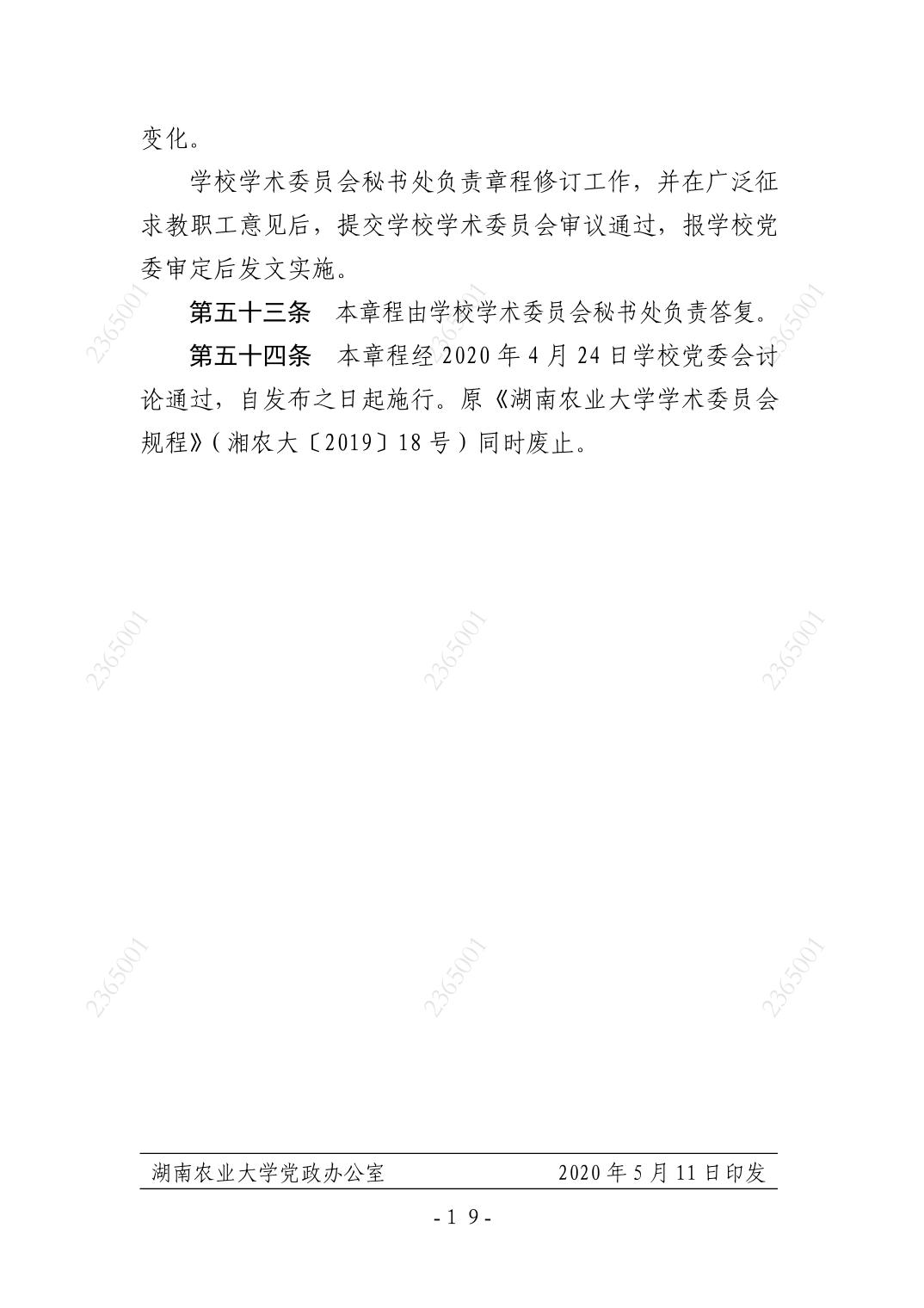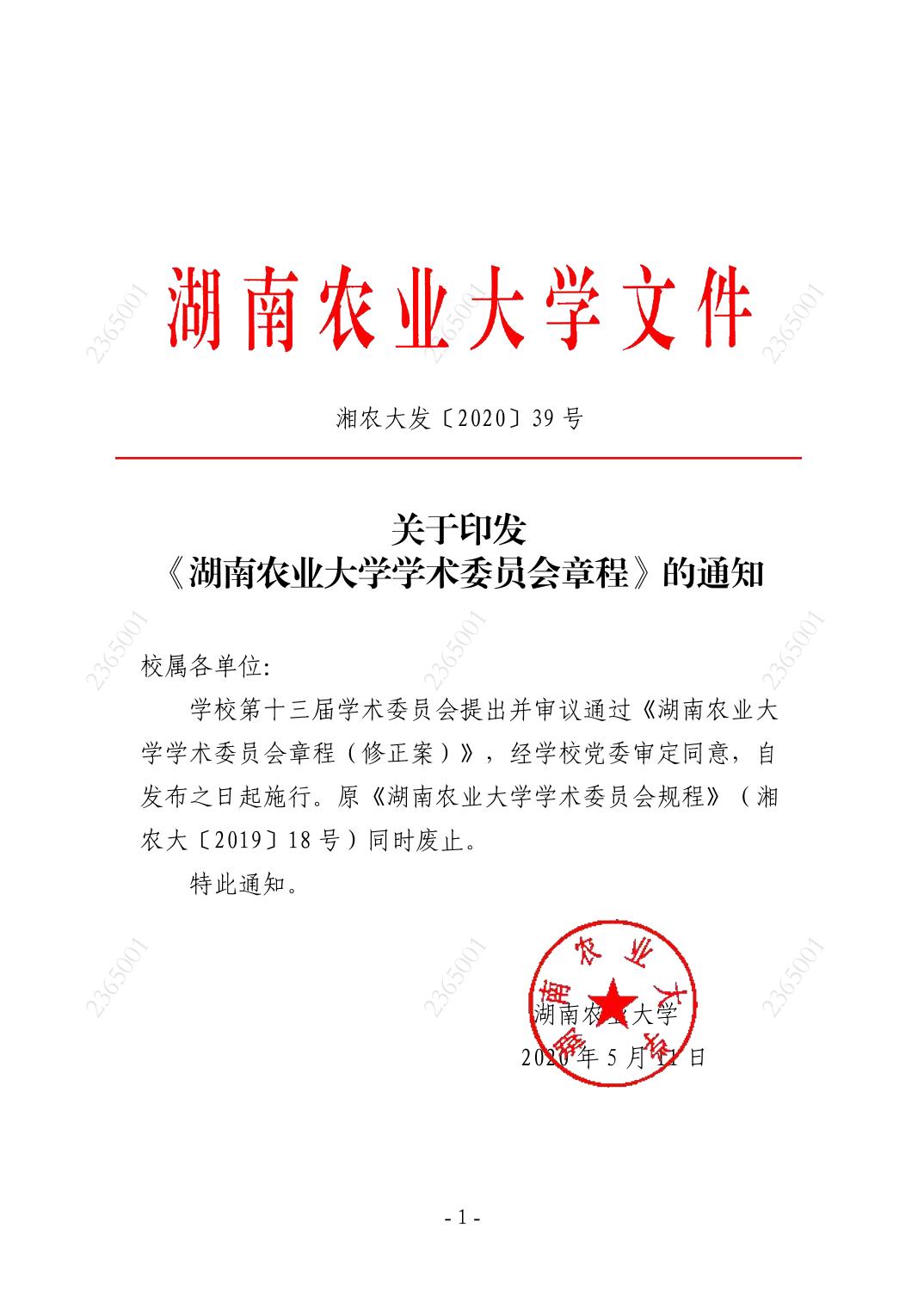 1.1.1-10《湖南农业大学学术委员会章程》(湘农大发〔2020〕39号)