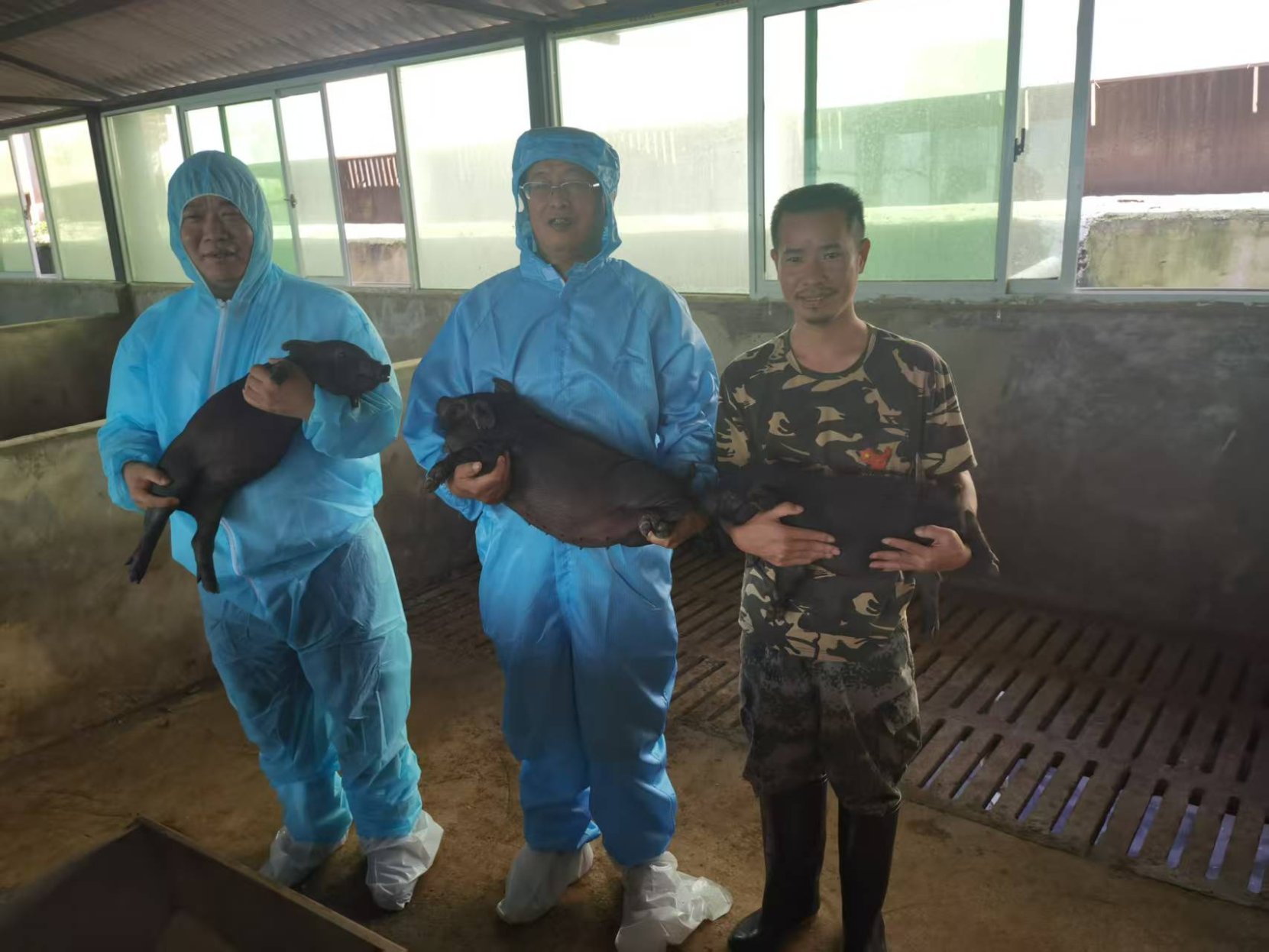 图:印遇龙院士在工作站指导澜沧黑猪选育工作