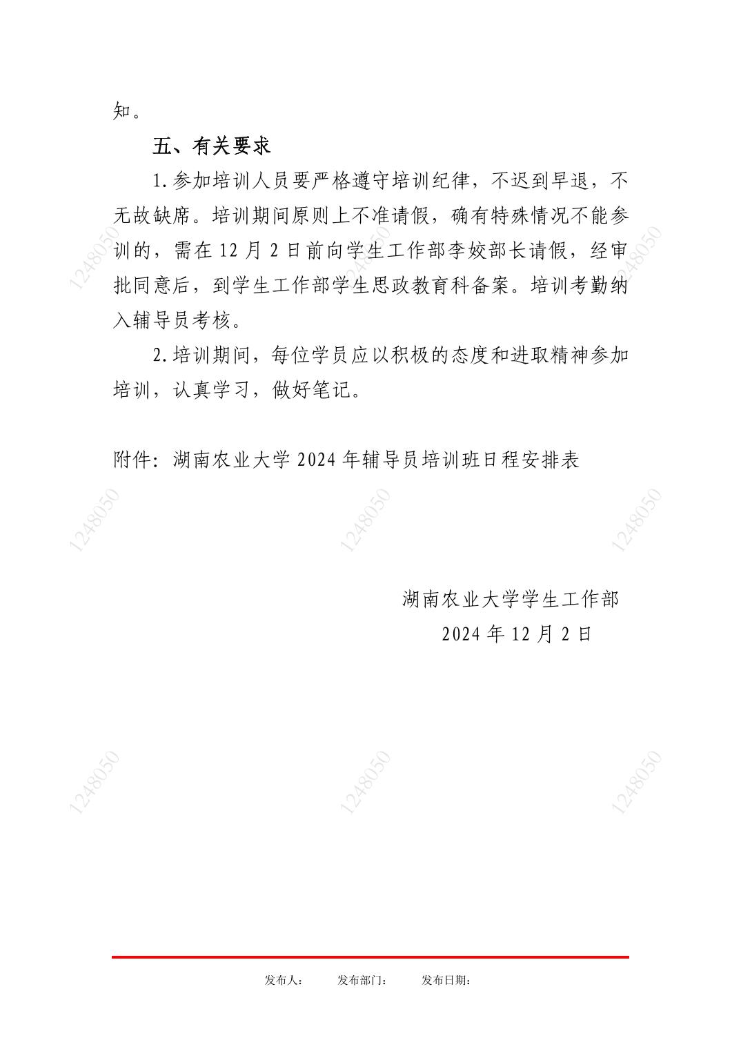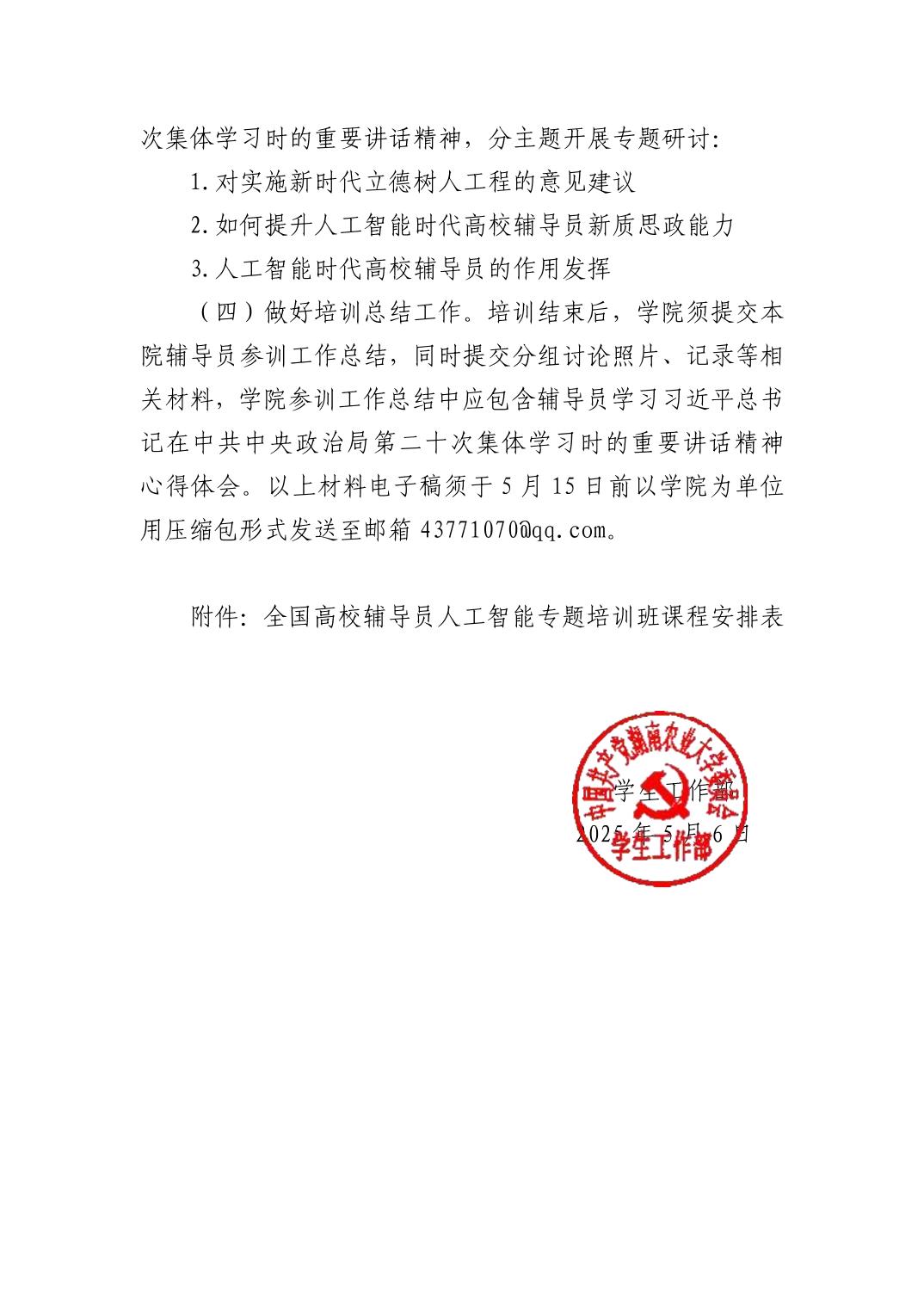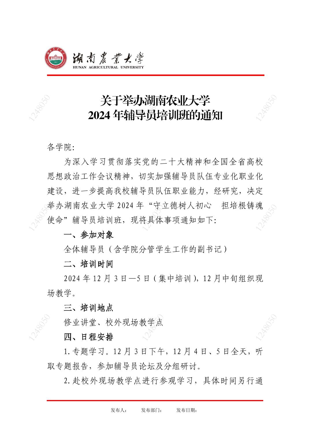 湖南农业大学2024年辅导员培训班日程安排表