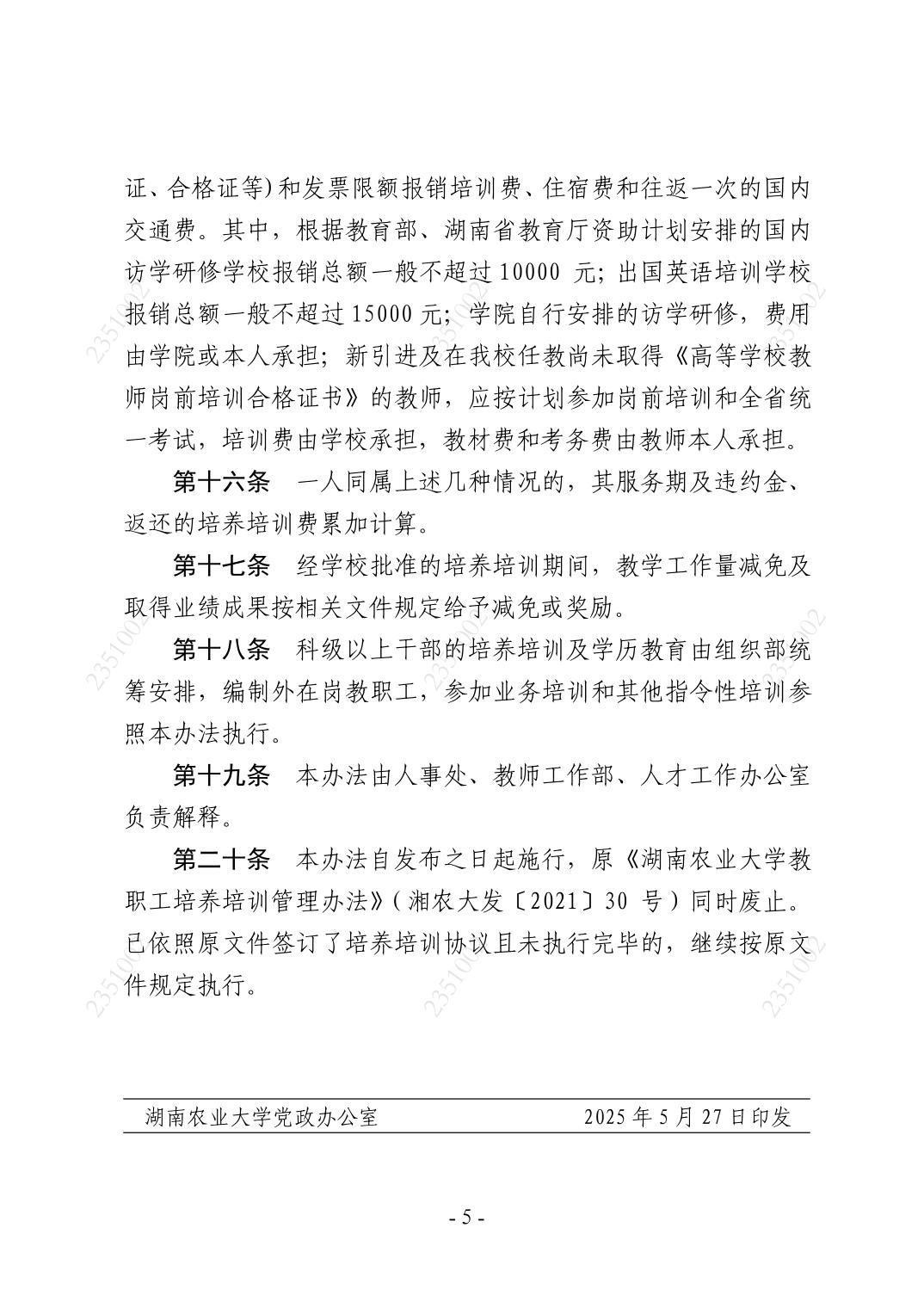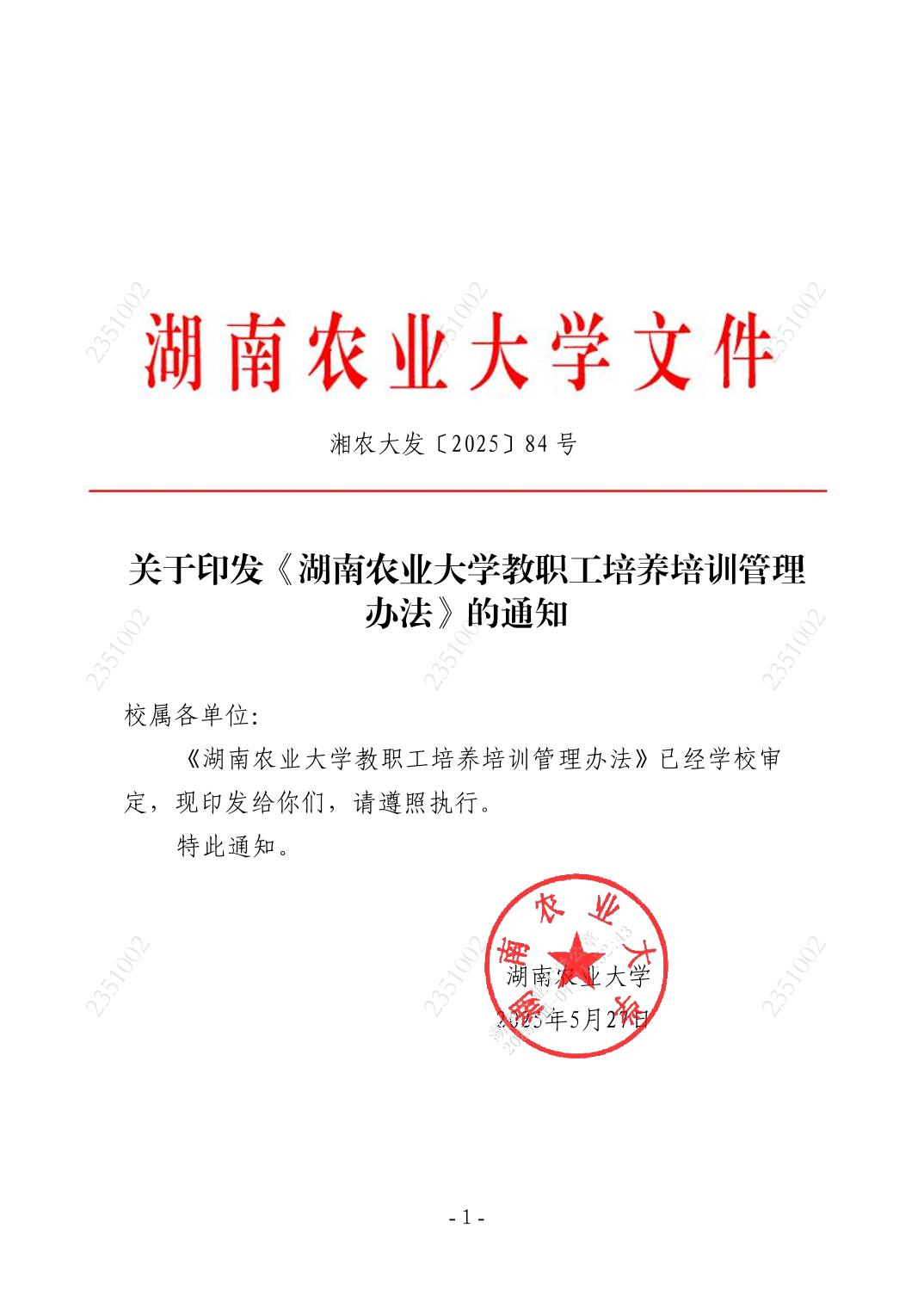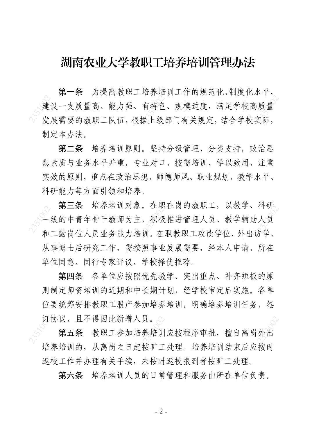 4.2.2-2 《湖南农业大学教职工培养培训管理办法》湘农大发〔2025〕84 号