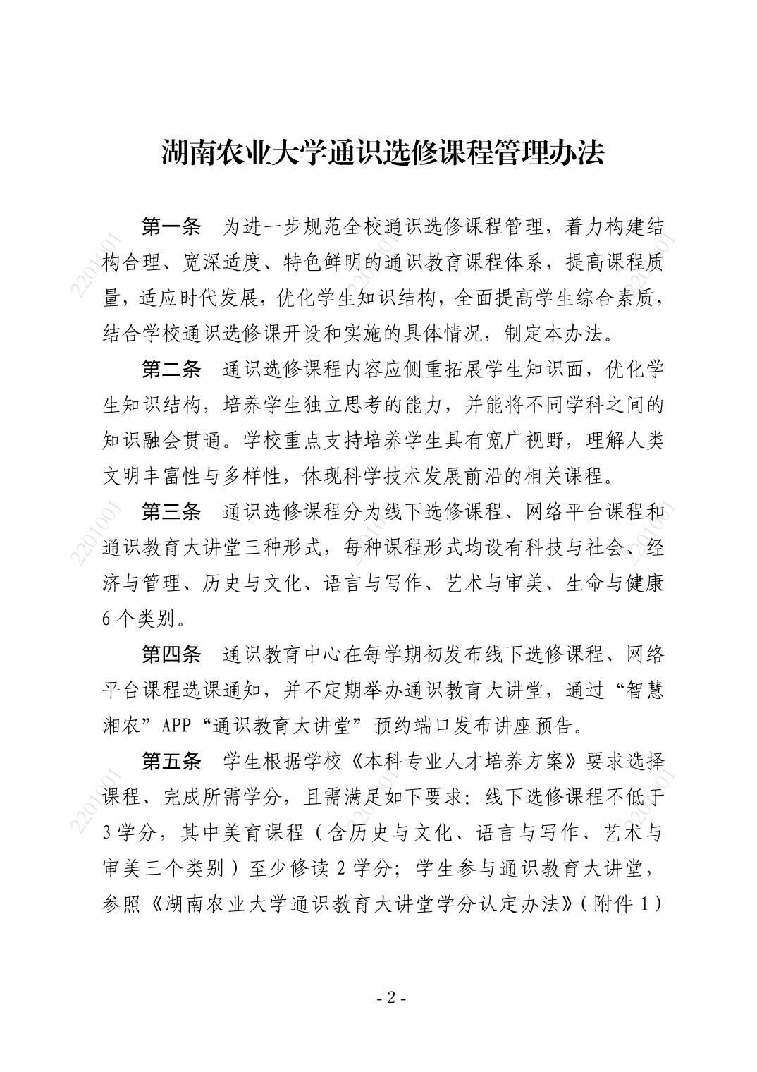 5.2.2-1《湖南农业大学通识选修课程管理办法》