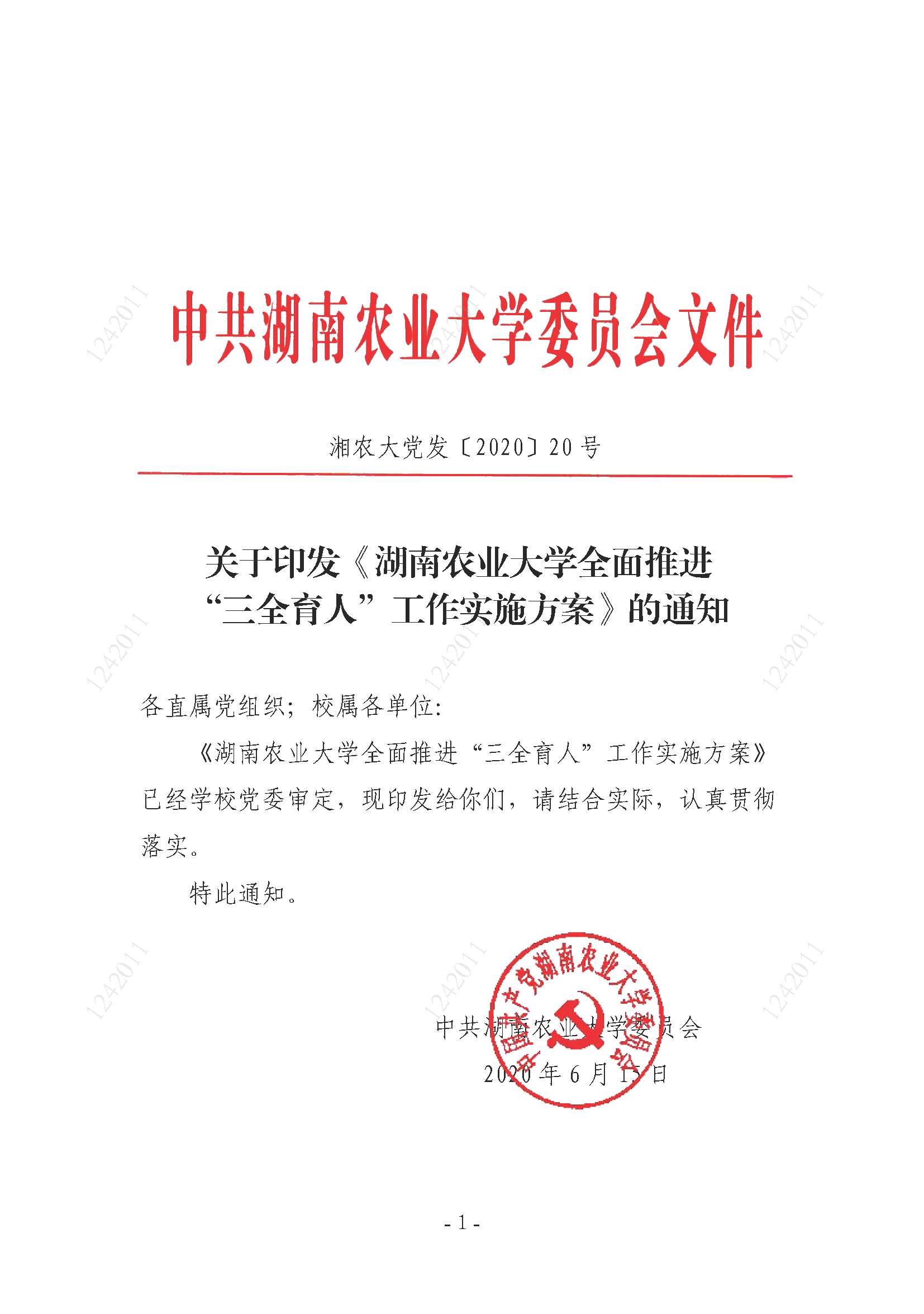 1.1.2-1《湖南农业大学全面推进“三全育人”工作实施方案》