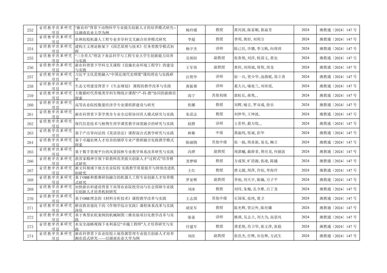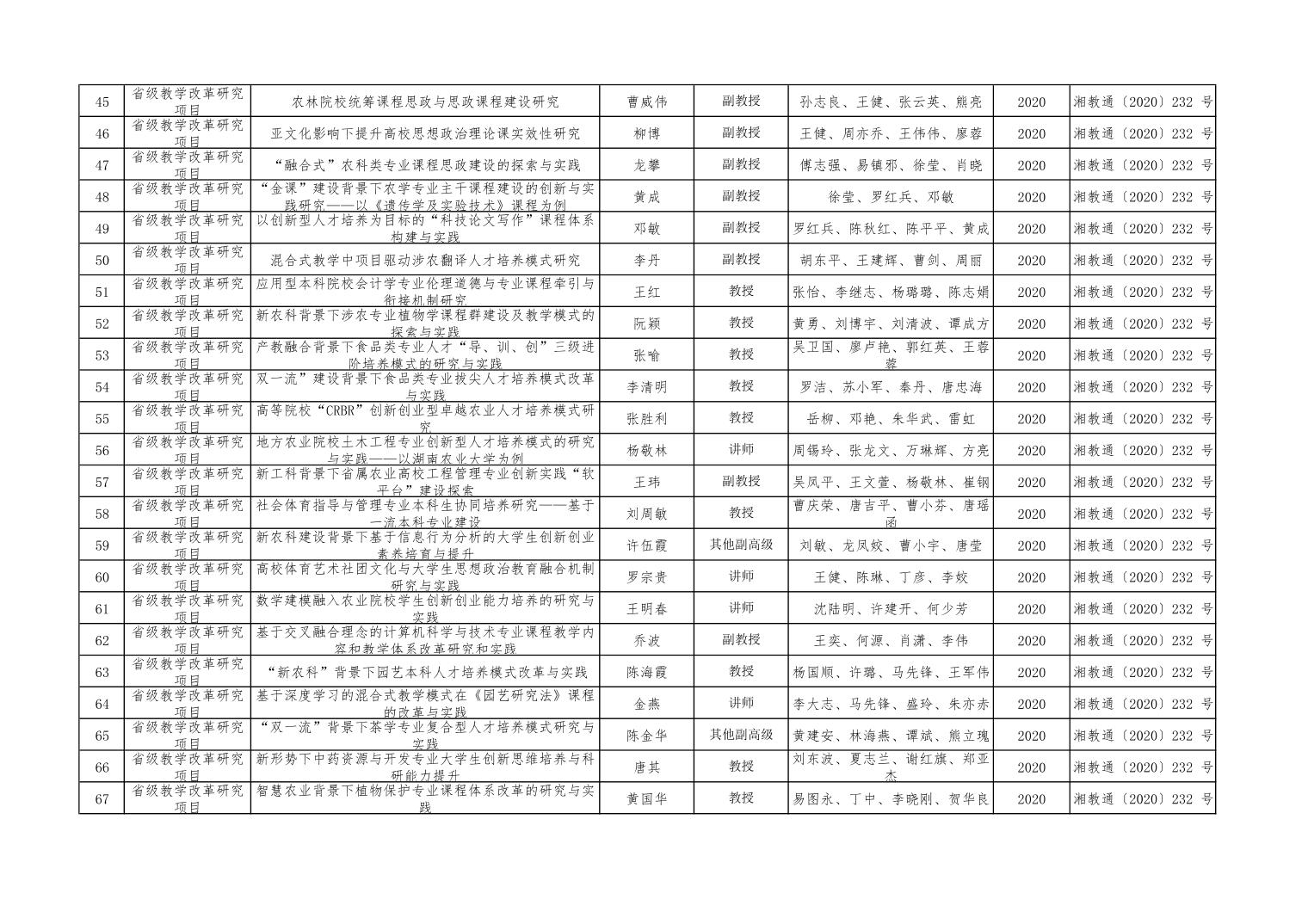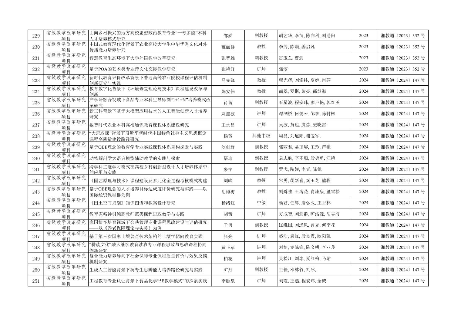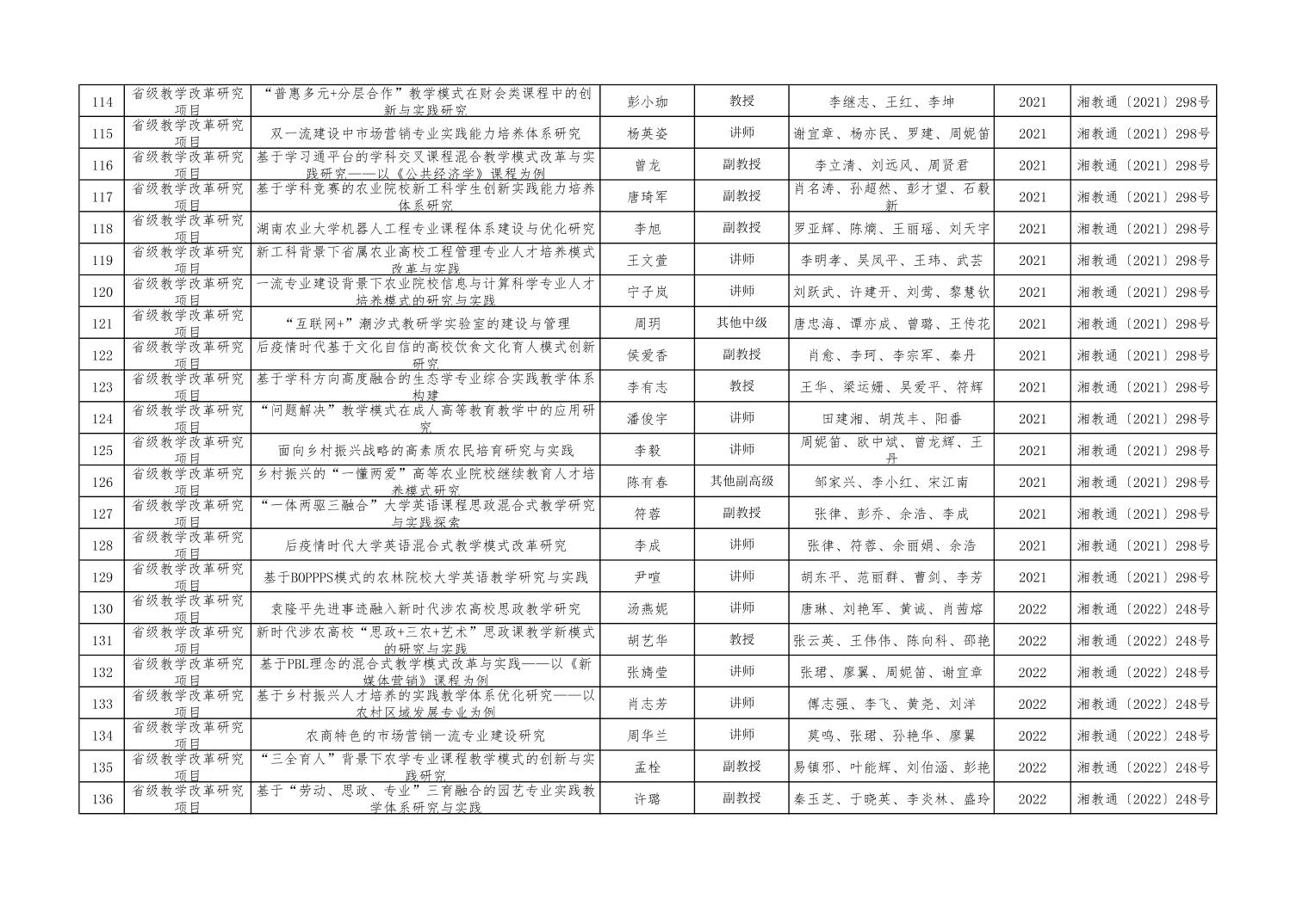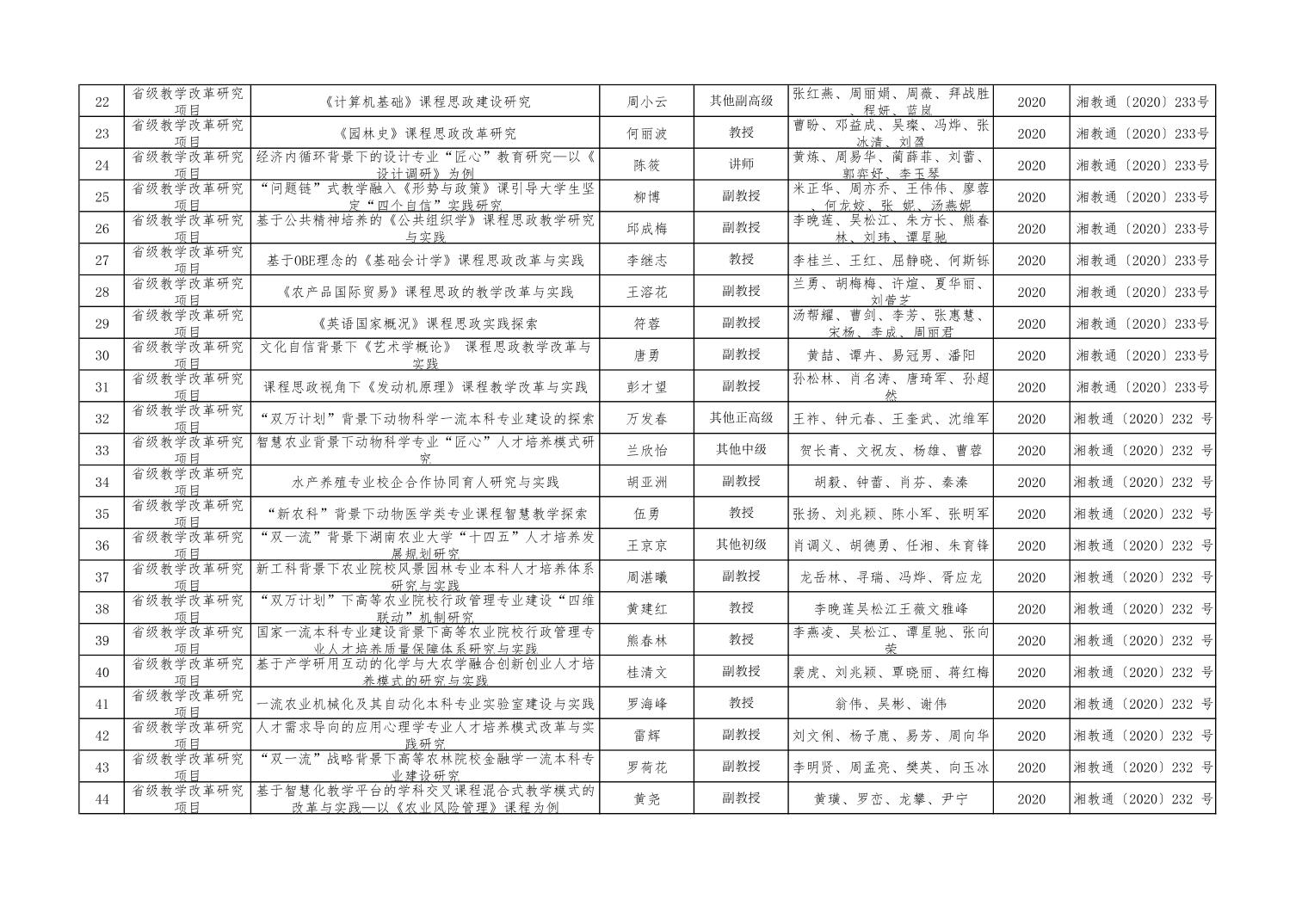 4.3.2-2湖南农业大学教授、副教授获国家级省级一流课程、教改项目及教学成果一览表