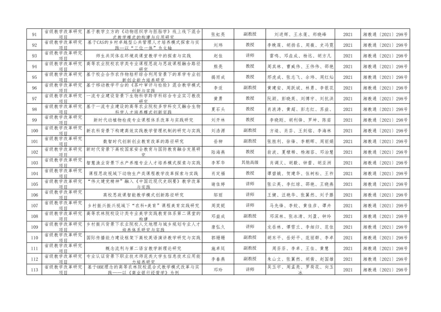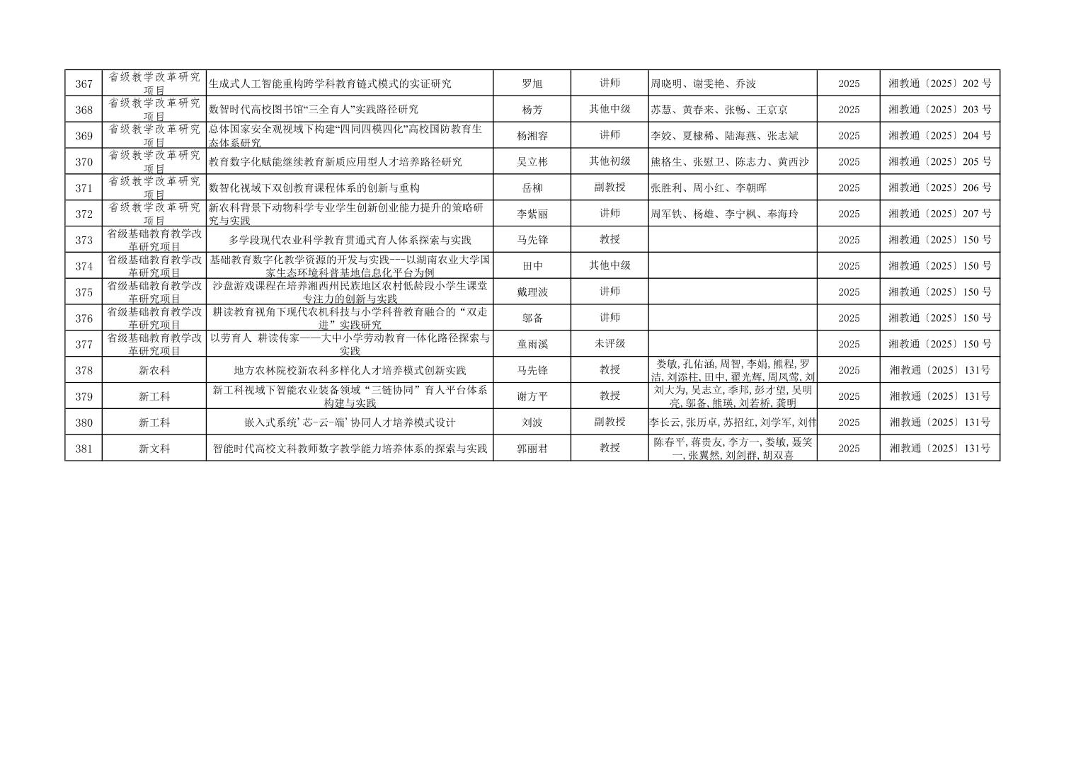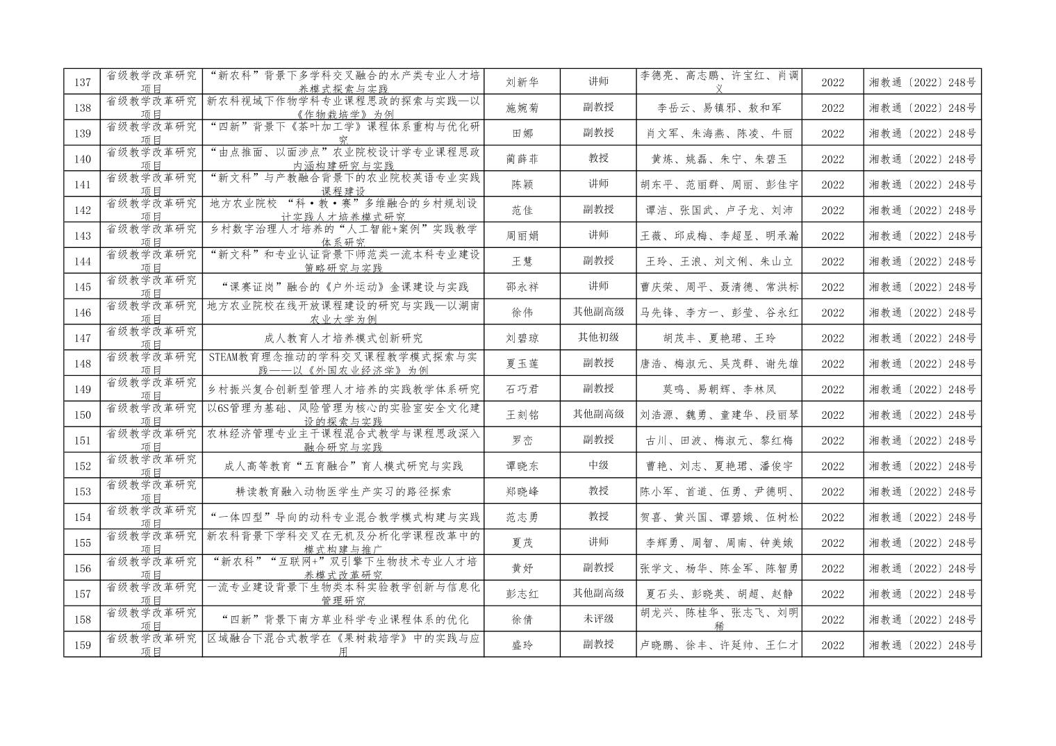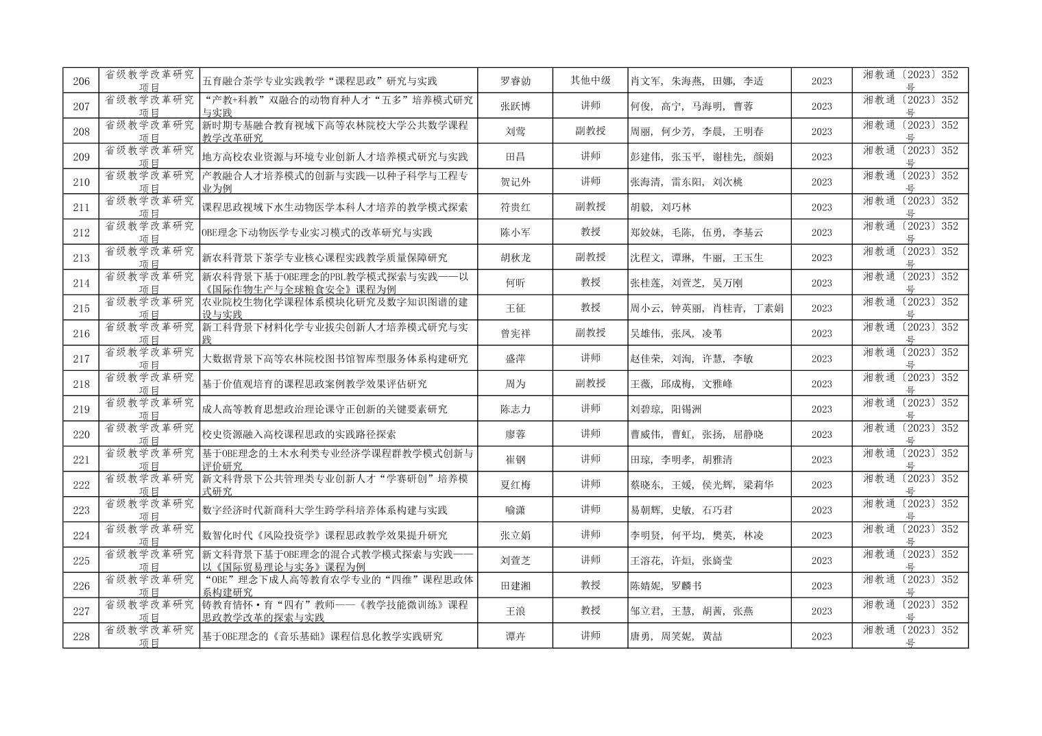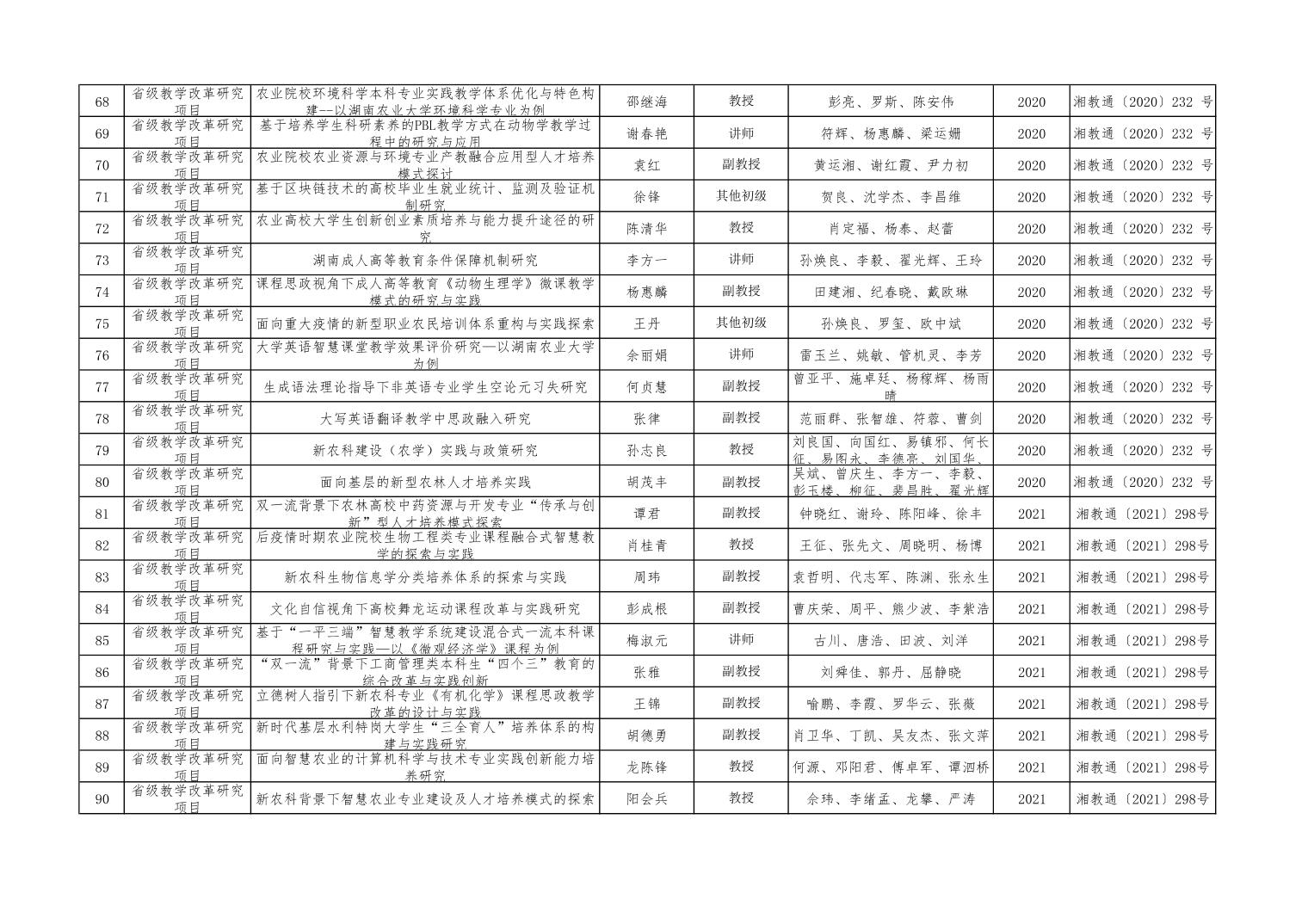 4.3.2-2湖南农业大学教授、副教授获国家级省级一流课程、教改项目及教学成果一览表