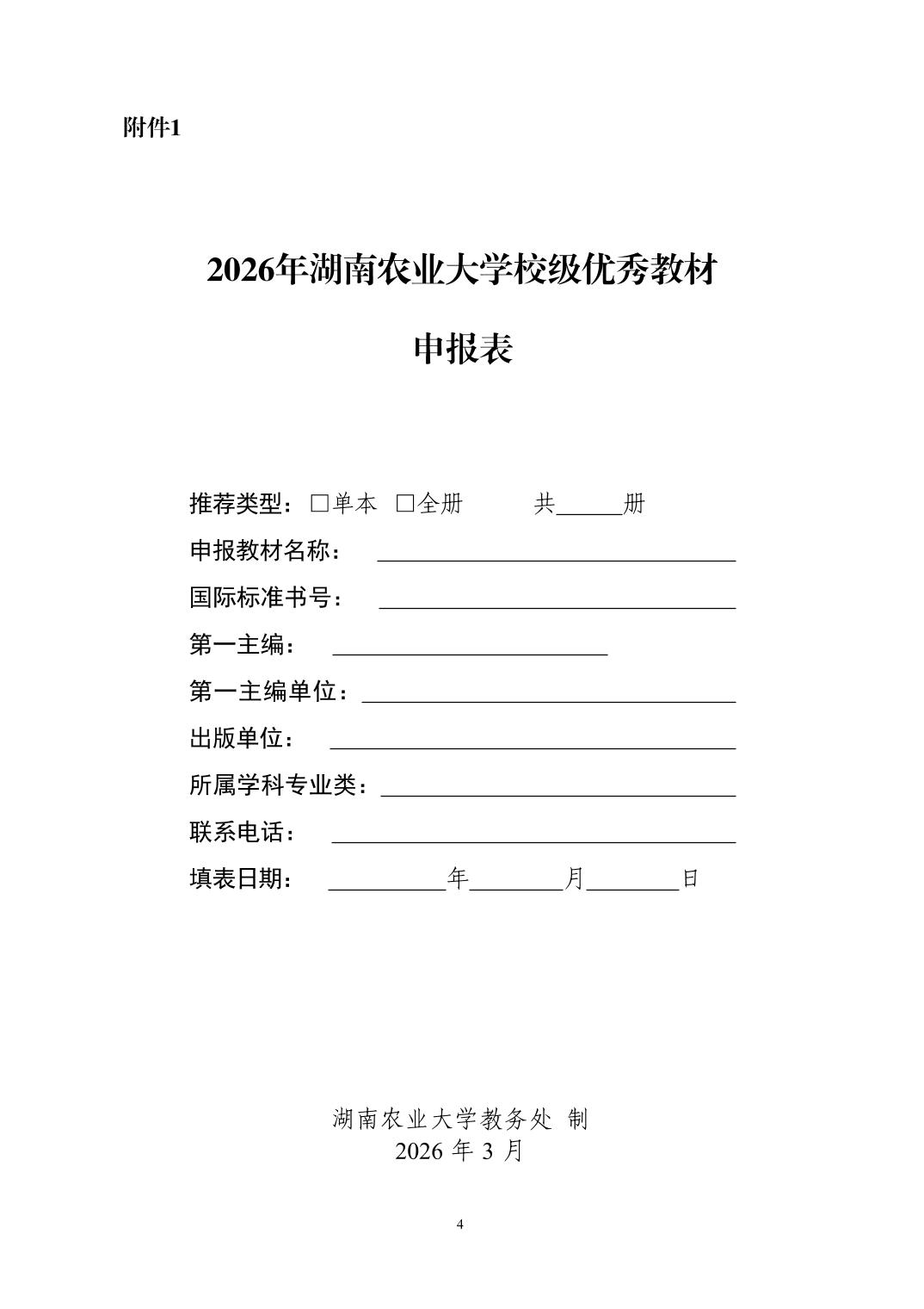 附件1 2026年湖南农业大学校级优秀教材申报表.docx