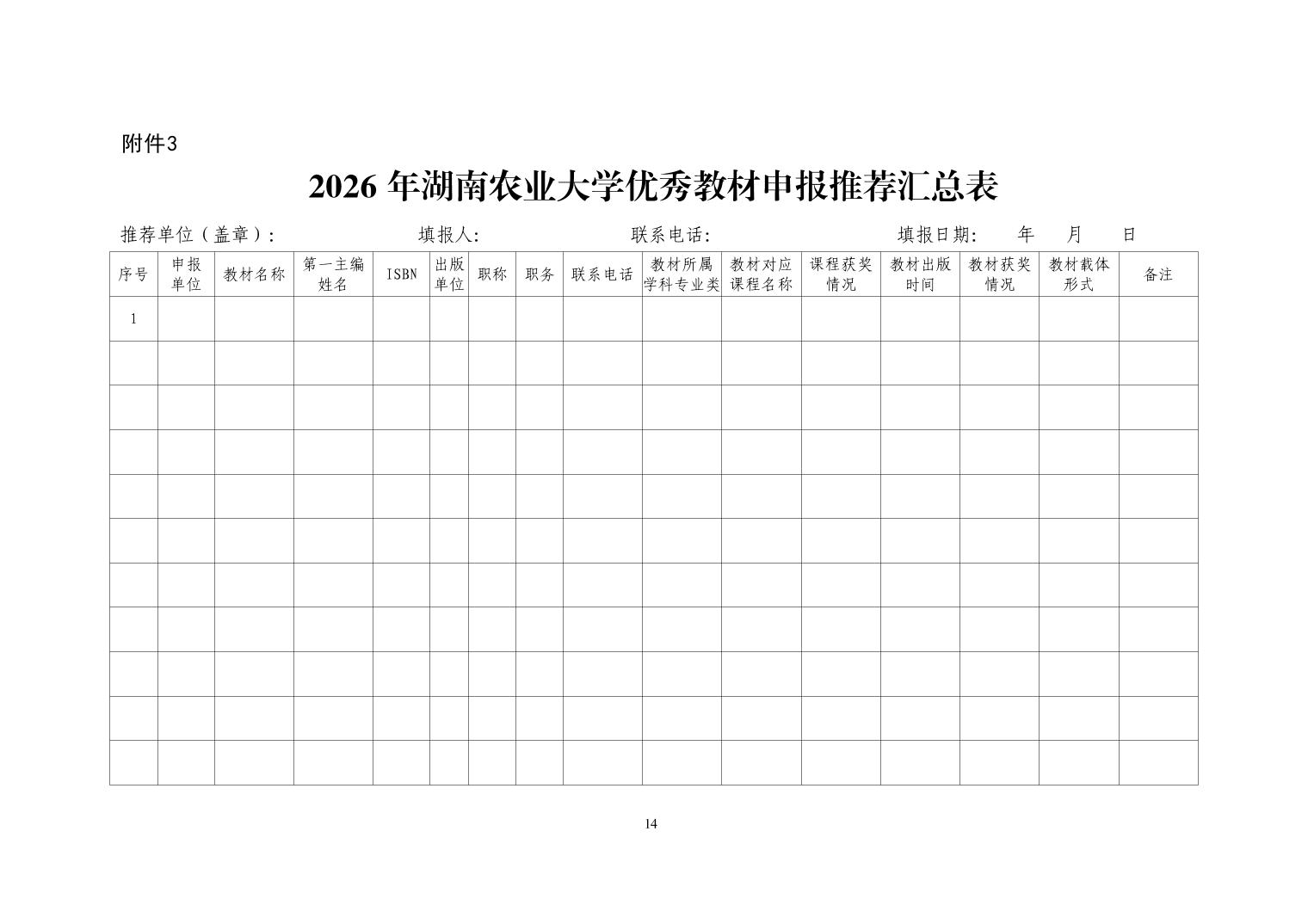 附件3 2026年湖南农业大学优秀教材申报推荐汇总表.docx